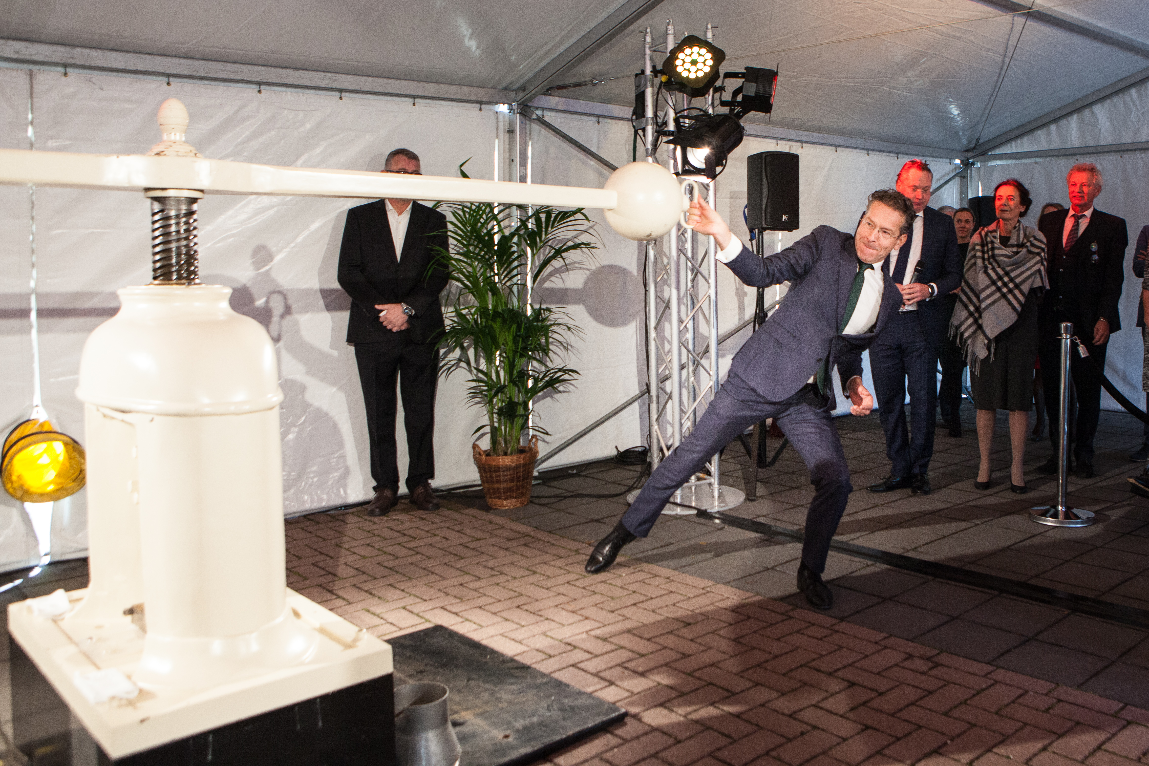 The first Wageningen University Fiver was minted by Jeroen Dijsselbloem on Friday 2 November. The special commemorative coin was issued by the Royal Mint in honour of the 100-year anniversary of WUR. WUR is now the first university with its own coin. Additionally, the “heads-or-tails” machine was also unveiled on 2 November allowing students and employees of WUR to toss a life-sized university coin to solve dilemmas.