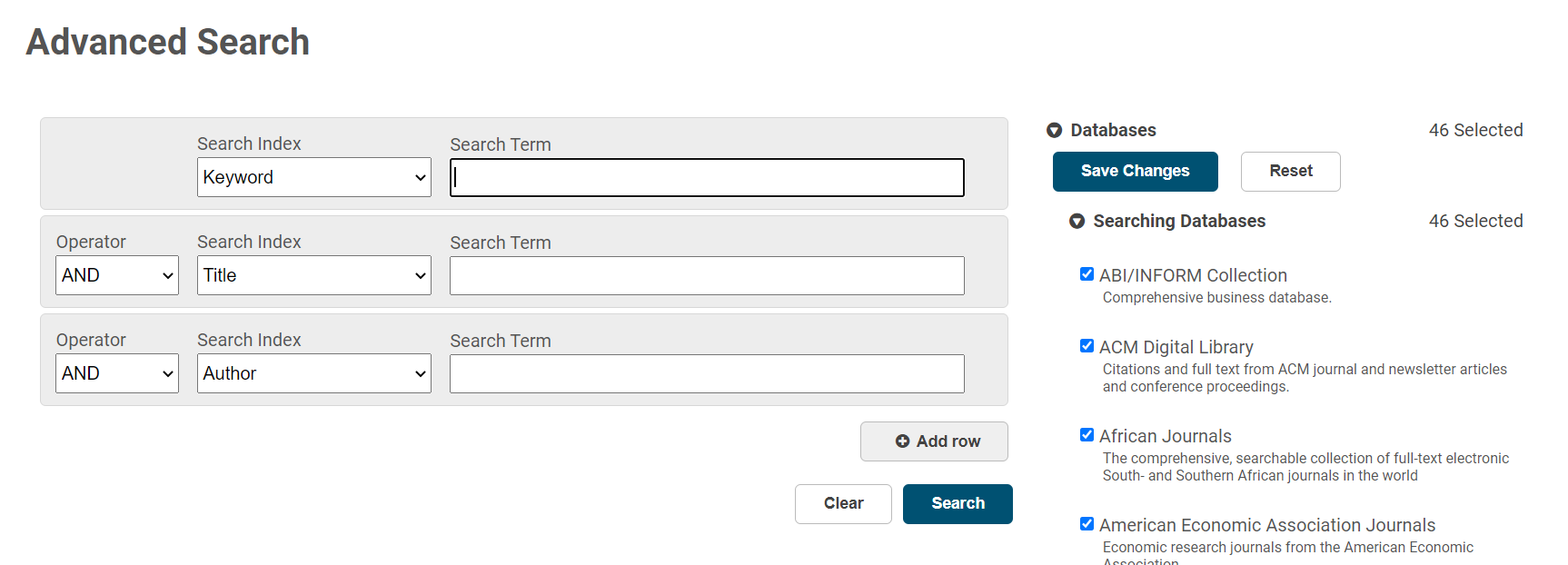 By default, you search via the simple search box. In the results page you can filter the search results by author, local collections, format, databases to search, publication year etc. With the option 'Retain filters' you can save your selection for a new search.