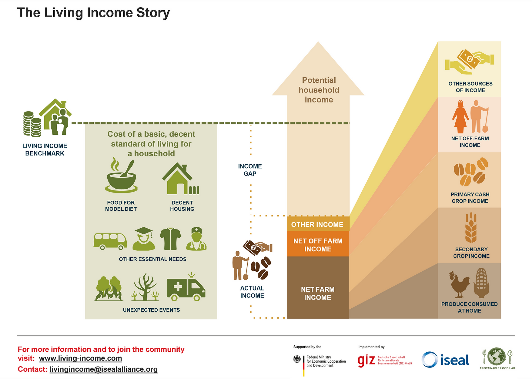 There are many different types of households, each with different possible pathways for growing their resilience and income. By considering household needs, aspirations and opportunities for income growth, optimal strategies can be developed to reduce and close living income gaps.