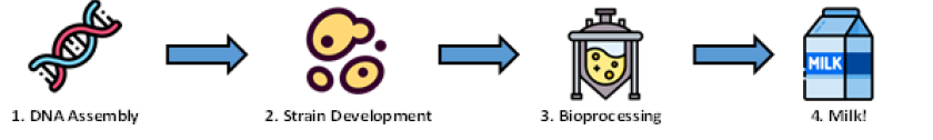 Precision fermentation is an emerging technology that enables the production of animal-based food ingredients, such as milk proteins, using bioreactors and microbial hosts. A microbial host of interest, typically a yeast or fungus, is genetically engineered to heterologously express an animal-based food protein such as β-lactoglobulin, casein, hemoglobin, or ovalbumin. This host is then cultivated in a bioreactor to produce its protein of interest.