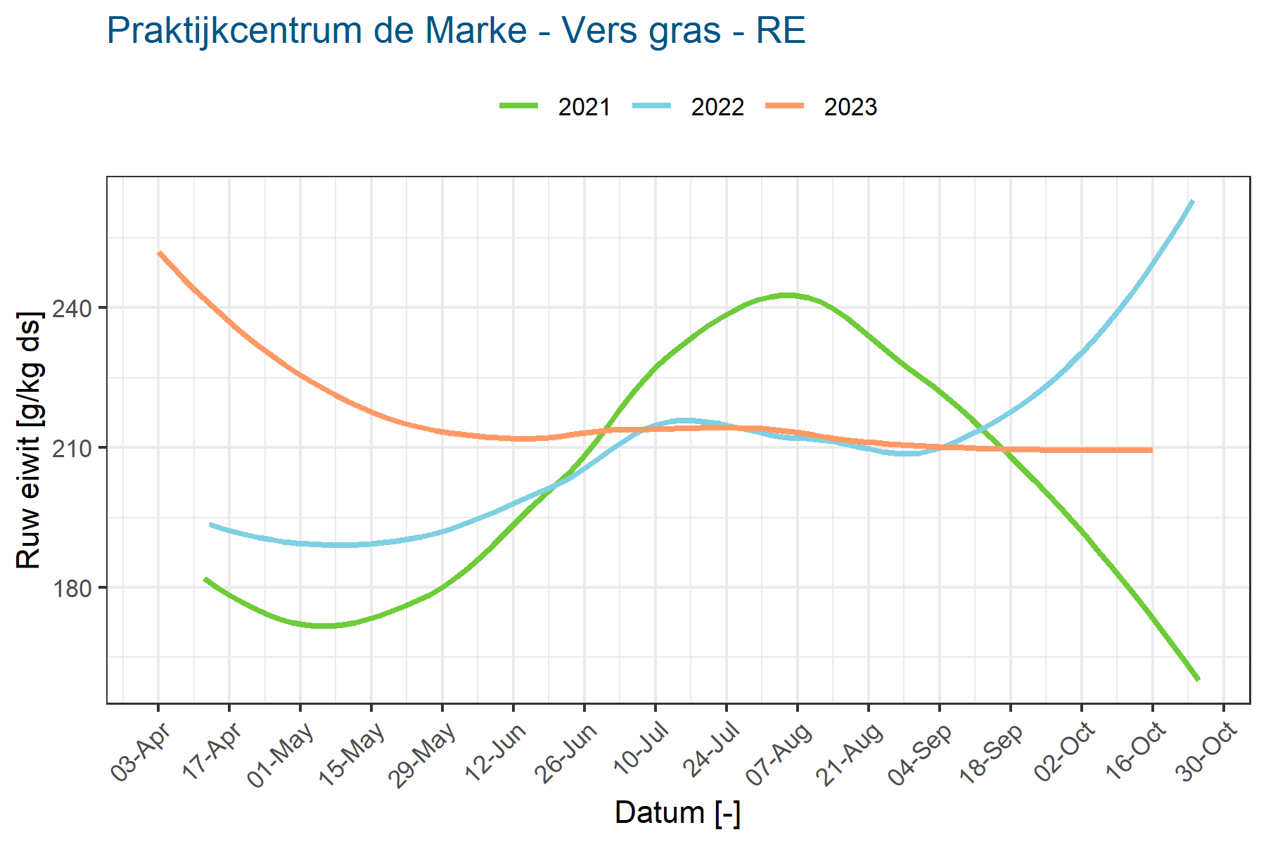 Voederwaarde van vers gras over 2021, 2022 en 2023
